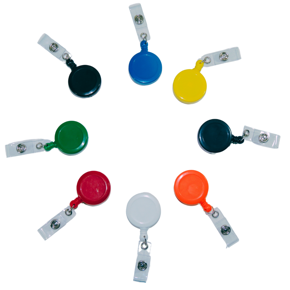 Muito usado em empresas que precisam de segurança e que não possam usar cordões para pendurar crachás